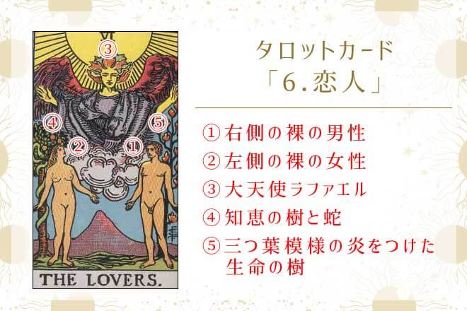 恋人のカードに描かれているシンボルには、それぞれ意味があります。